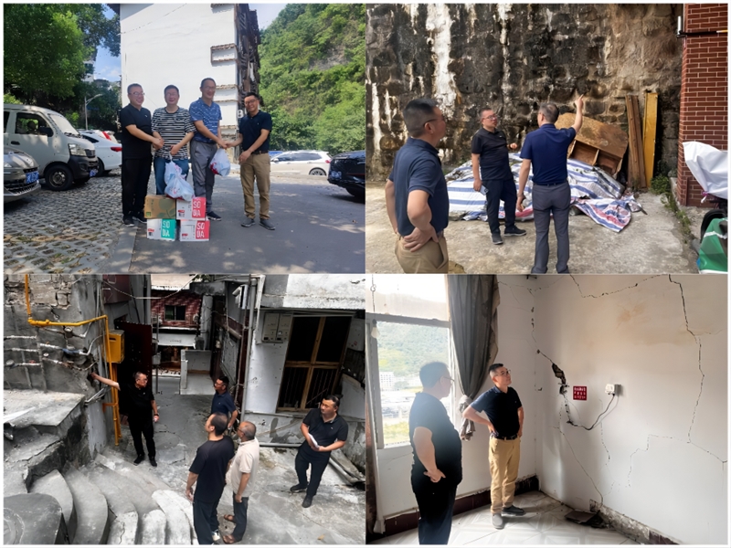 慰問組一行走訪了武隆縣多個項目現場,為奮戰在烈日下的職工送上防暑藥品及清涼飲料,了解關懷一線人員工作、生活情況,對高溫下堅守崗位的一線工作人員給予充分肯定和感謝。冉龍彬董事長、張京街副總經理帶隊深入房屋檢測鑒定現場,就現場檢測、結構安全風險、應急處理、結構分析報告、鑒定結論、自動化監測、加固方案制定等風險點提出了工作要求,并與武隆區住建委相關領導進行了工作溝通和交流。