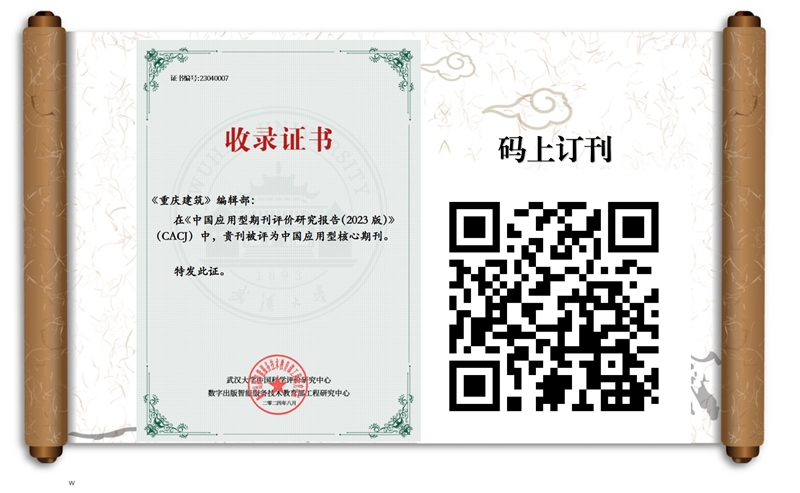 《重慶建筑》是重慶市住房和城鄉(xiāng)建設(shè)委員會(huì)主管,重慶市建筑科學(xué)研究院有限公司主辦、面向海內(nèi)外公開(kāi)發(fā)行的優(yōu)秀山地建筑科技期刊。自2002年創(chuàng)刊以來(lái),《重慶建筑》一直堅(jiān)持高標(biāo)準(zhǔn)審稿編稿,確保所刊文章具備較高的科研價(jià)值、實(shí)用價(jià)值和可讀性,對(duì)讀者的研究工作和工程實(shí)踐提供了切實(shí)的幫助和指導(dǎo)。多年來(lái),我刊立足重慶山地建筑特色,服務(wù)山地優(yōu)秀建設(shè)項(xiàng)目和前沿建筑科技成果的宣傳推廣,為重慶市各區(qū)縣面向全國(guó)推廣地方建筑文化和地方建設(shè)成就,做出了重要貢獻(xiàn)。雜志現(xiàn)已被中國(guó)知網(wǎng)等多個(gè)權(quán)威數(shù)據(jù)庫(kù)全文收錄,并被評(píng)為CACJ中國(guó)應(yīng)用型核心期刊。